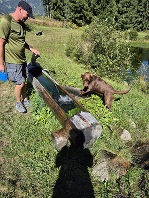 Wir sind vor einigen Jahren schon einmal hier gewesen und haben die gleiche Wanderung gemacht. Damals war ich jeden morgen, mit dem Hund joggen und total fit. Als wir an dem Berggasthof angekommen sind haben wir eine zusätzliche Gipfelrunde drangehängt. Daran war dieses Jahr nicht zu denken. Wir waren total platt, als wir an der Hütte ankamen.