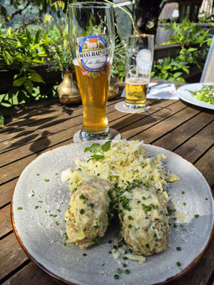Dort haben wir sehr lecker gegessen. Für Torsten gab es Südtiroler Kasnocken und ich habe mich für gegrilltem Ziegenkäse auf Kräuterbett entschieden. Es war sehr lecker.