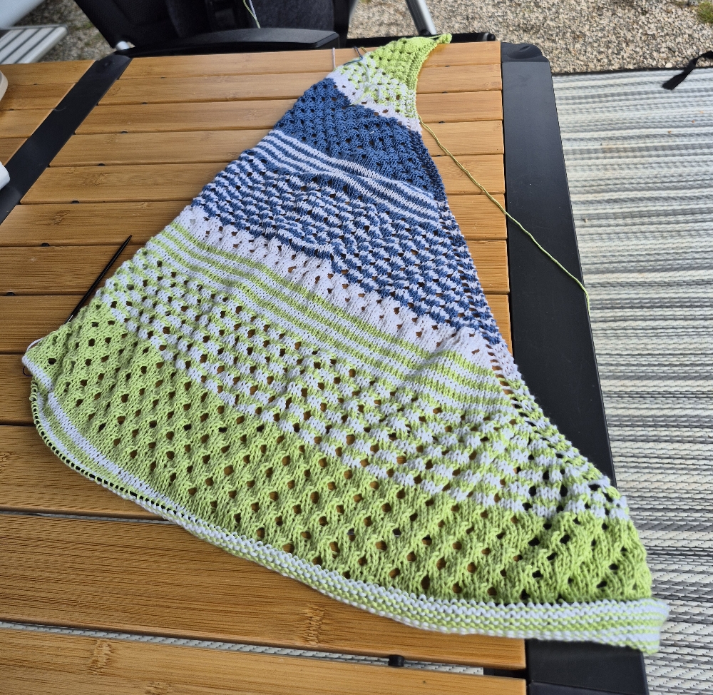 Die Fahrt bis Bruneck habe ich zum stricken der Nordlichtpoesi genutzt. Ich brauche noch einige KM zum fertigstellen.