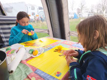 Vormittags waren die Kinder zum Basteln! Es wird immer schwieriger sie von dort abzuholen.
