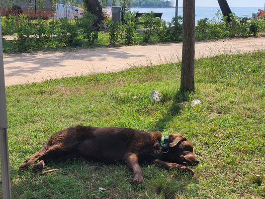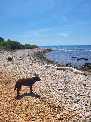Dieser Platz ist sehr hundefreundlich was ich hier an der Adria nie für möglich gehalten hätte! Man kann zu beiden Seiten am Strand spazieren gehen oder einfach nur faul am Strand liegen.