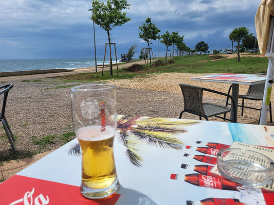 Am Ende waren es rund 15 Kilometer die uns sehr viel Spaß gemacht haben. Leider hat es zum Ende aus Eimern geschütet. Wir haben aber Glück gehabt und eine nette Pizzeria gefunden. Beim Essen beschlossen wir Morgen vor dem Wetter zu flüchten und nach Kroatien zu fahren.