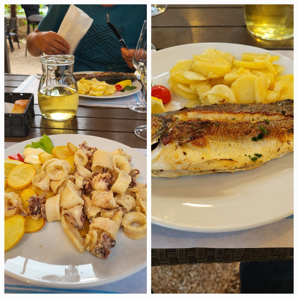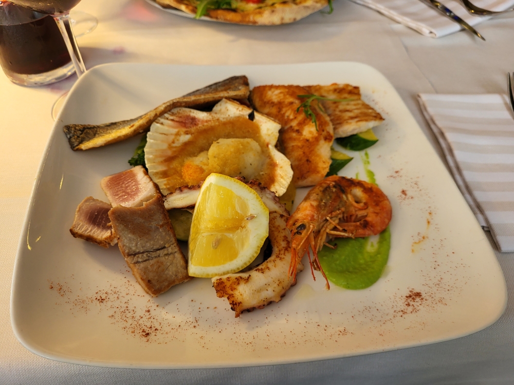 Den Abend lassen wir gemütlich in einem Restaurant ausklingen! Marion hat eine leckere Pizza 🍕 und ich eine Fischplatte.
