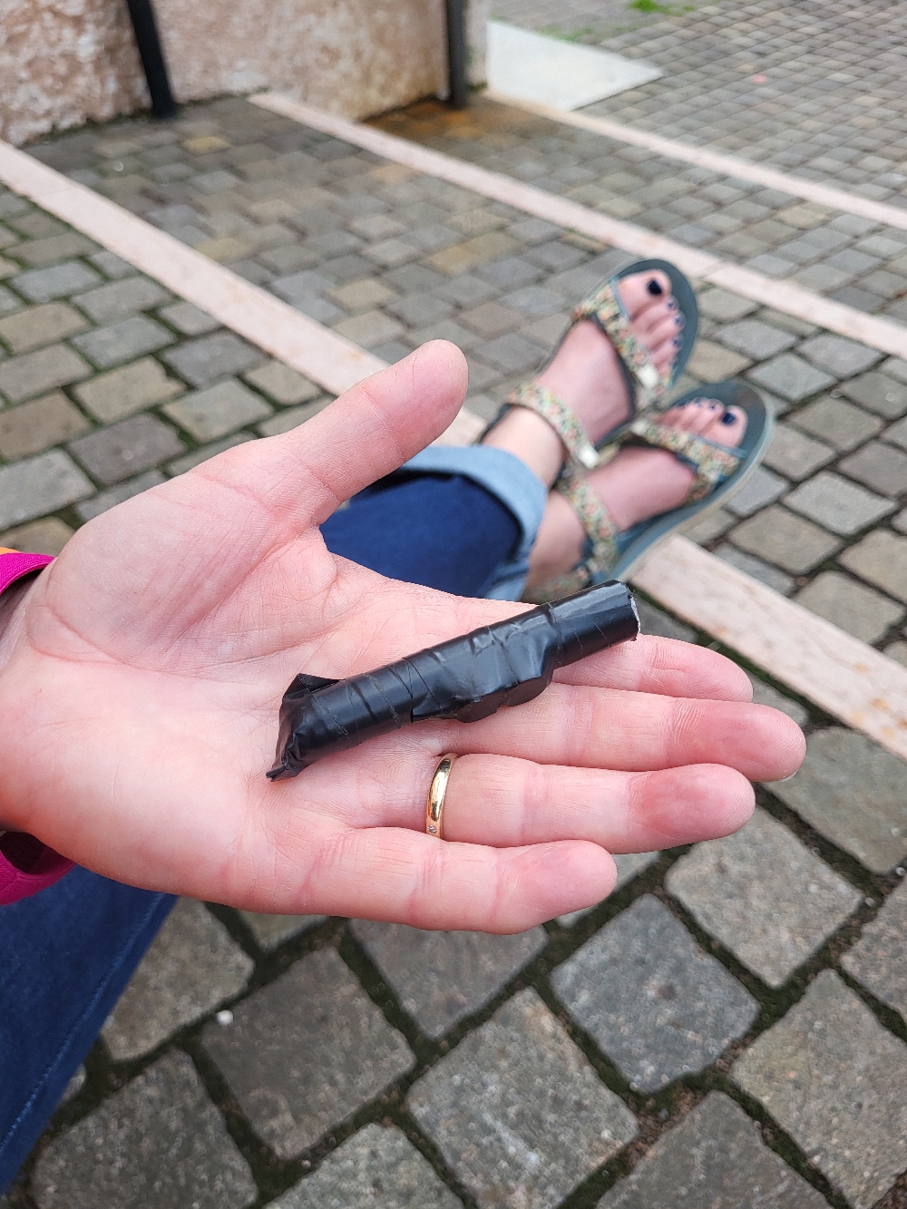 Der Markt in Levico Terme ist nicht so schön. Wir bummeln noch ein wenig durchs Örtchen, gehen in ein Kaffee und suchen einen Cache.